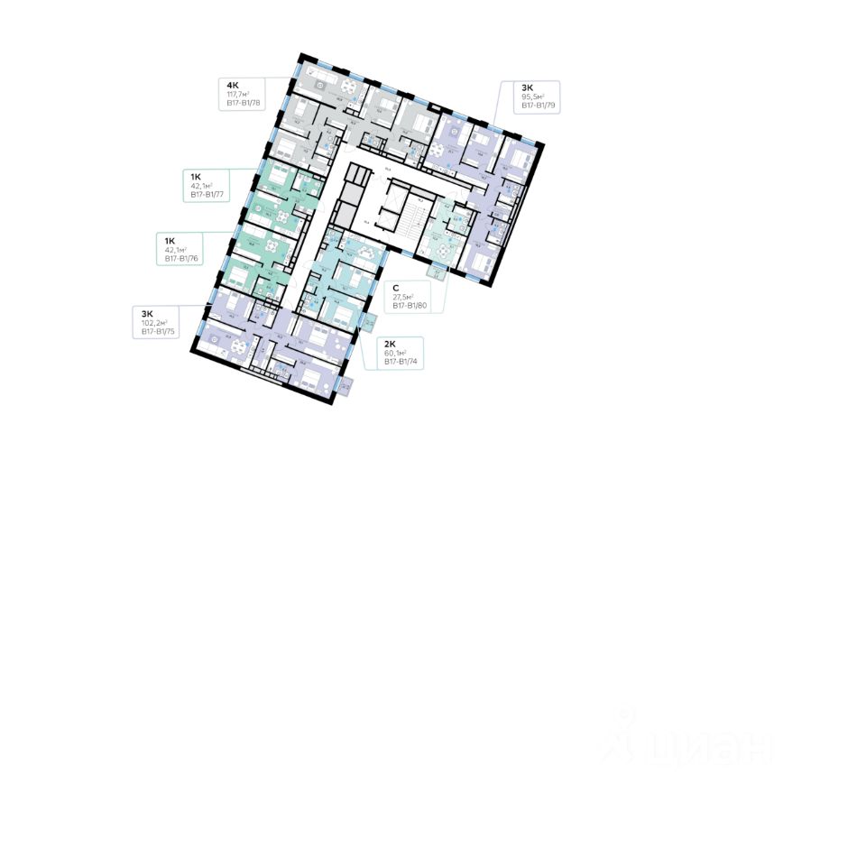 Квартал В17 состоит из шести корпусов переменной этажности (от 1 до 10 этажей) и 491 квартиры. Корпуса объединены общей подземной частью, где расположен паркинг на 309 автомобилей, места для мотоциклов и более 400 кладовых помещений.