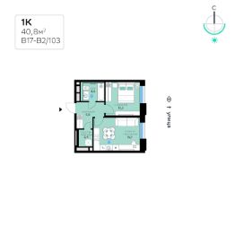 В продаже — однокомнатная квартира с чистовой отделкой, общей площадью 40,8 кв. м. Квартира расположена на шестом этаже шестиэтажного корпуса класса Балансд в квартале В17 нового района СберСити, который строит Сбер. Всего в доме — 103 квартиры.