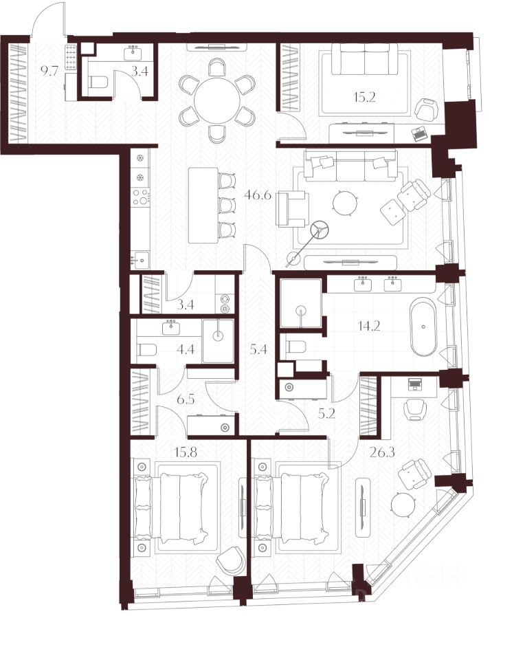 Продаётся 3-комнатная квартира общей площадью 156.10 м².