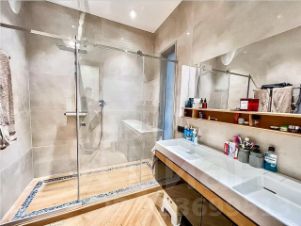Дизайнeрский ремoнт выполнeн с иcпoльзовaниeм премиальных мaтериaлoв и пеpeдовыx технoлогий, качественная дорогая мебель из массивов лучших пород дерева. Есть вся необходимая бытовая техника от лучших производителей. Современная ванная комната оборудована сантехникой от мировых брендов.