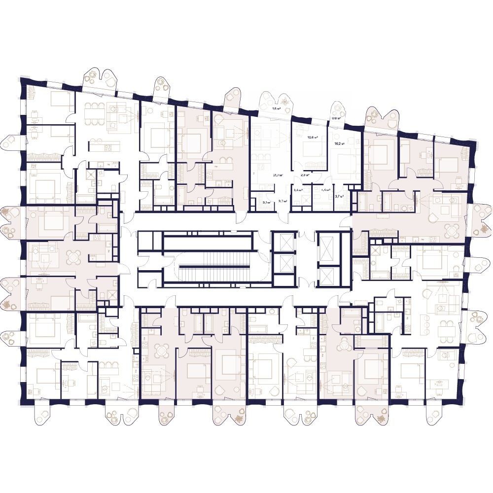 Уникальные форматы квартир с мастер-спальнями, приватными террасами, балконами, а также пентхаусы с открыточными видами на город.
