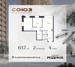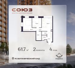 Продаётся 2-комнатная квартира площадью 61.7 м² на 4 этаже в Жилом Комплексе "Союз".