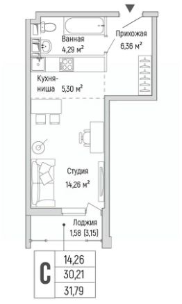 на 4 этаже из 9, секция 4, в ЖК Riga Hills площадью 31.79 кв.м. ЖК Riga Hills (Рига Хиллс) яркий жилой комплекс бизнес-класса в экологически чистом районе Подмосковья, всего в 12 км от МКАД по Новорижскому шоссе.