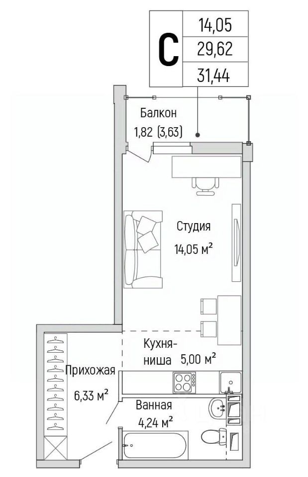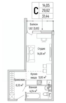 на 4 этаже из 10, секция 3, в ЖК Riga Hills площадью 31.44 кв.м. ЖК Riga Hills (Рига Хиллс) яркий жилой комплекс бизнес-класса в экологически чистом районе Подмосковья, всего в 12 км от МКАД по Новорижскому шоссе.