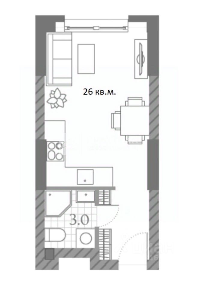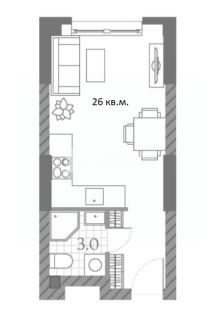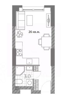 Достаточно большая площадь студии 26 кв.м. позволила функционально организовать пространство:
