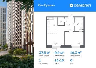 Строим кварталы для жизни с заботой о будущем. Предлагается 1-комнатная квартира комфорт-класса 37,5 кв.м в корпусе 18-19 на 6 этаже, в ЖК "Эко Бунино"