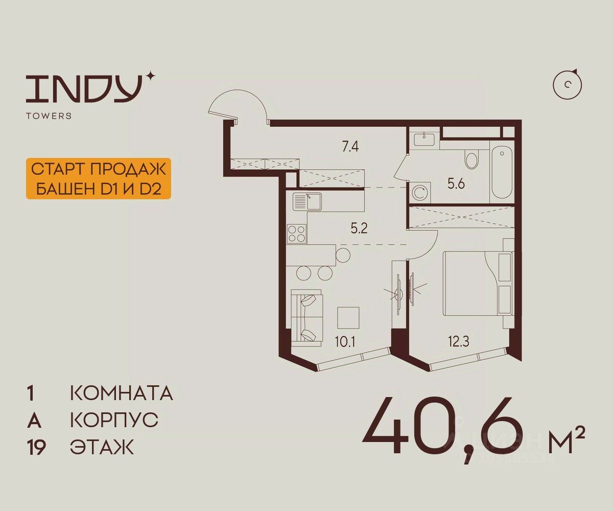 Продается уютная однокомнатная квартира на 19 этаже жилого комплекса Indy Towers. Вид из окон: на улицу. Срок сдачи: 4 кв. 2026 г.