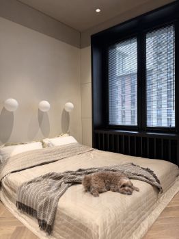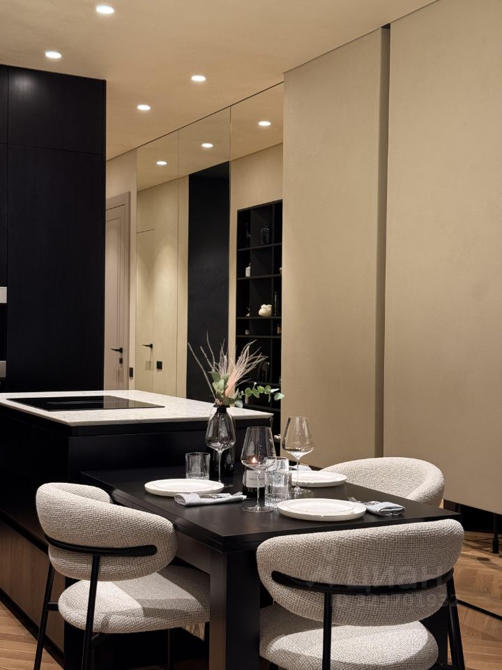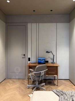 Окна детских комнат выходят во двор, кухня-гостиная и мастер-спальня — на зелёную аллею. Интерьер выдержан в нейтральной гамме, сбалансирован по эстетике и удобству.