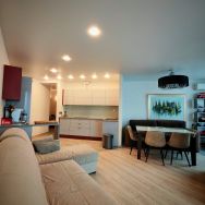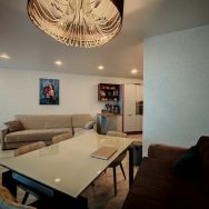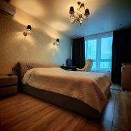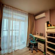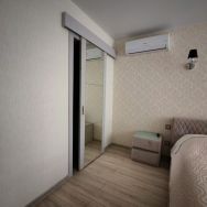 В квартире отличная планировка: две спальных комнаты и просторная гостиная- столовая. В одной из спален установлен встроенный просторный гардероб.