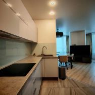 Продается с полной меблировкой и встроенной кухней, укомплектованной встроенной бытовой техникой.