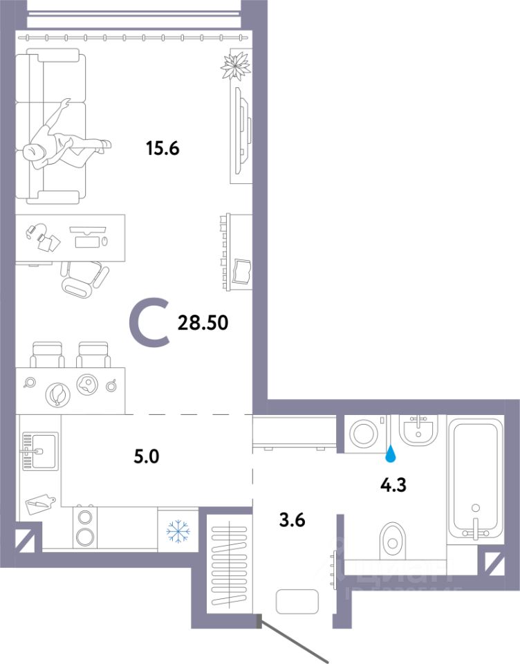 Продаётся студия в строящемся доме (Дом 1), срок сдачи: II-кв. 2026, общей площадью 28.5 кв.м., на 8 этаже. Многоэтажные жилые дома с объектами инфраструктуры, расположенные по адресу: г. Москва, внутригородское муниципальное образование Очаково - Матвеевское, ул. Озерная, вл. 42.