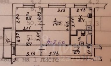Общая площадь 50,2 кв.м, комната 14,7 кв.м смежная с комнатой 8,8 кв.м и кухней 6,4 кв.м, комната 9,4 кв.м - изолированная, санузел совмещённый, лоджия остеклена (алюминиевый профиль, раздвижные стеклопакеты)