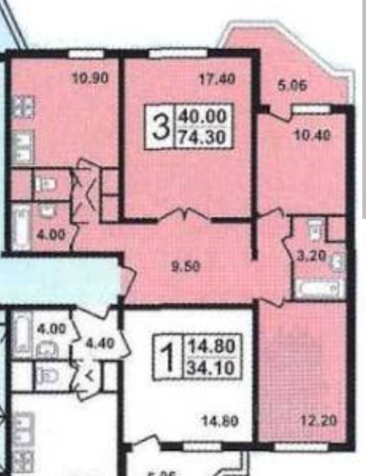 Отличная планировка. 3 изолированных комнаты: кухня, огромная гостиная, две спальни, большой коридор, два санузла (один совмещённый и один раздельно:ванная и туалет).