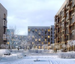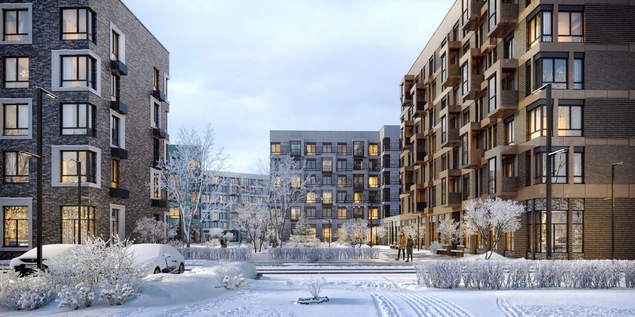 Жилой комплекс в окружении лесопарков и рядом с рекой. До станции МЦД-4 "Санино" можно дойти пешком за 7 минут, а на территории проекта появится транспортно-пересадочный узел с торговым центром. Для жителей построят школу, 2 детсада, в одном из которых будут развивающие кабинеты-трансформеры.