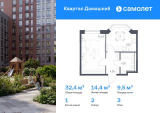 Строим кварталы для жизни с заботой о будущем. Предлагается 1-комнатная квартира комфорт-класса 32,41 кв.м в корпусе 2 на 3 этаже, в ЖК "Квартал Домашний"