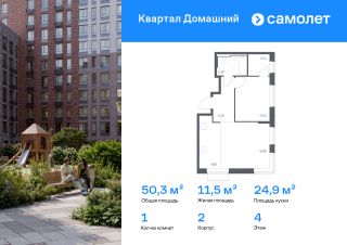 Строим кварталы для жизни с заботой о будущем. Предлагается 1-комнатная квартира комфорт-класса 50,26 кв.м в корпусе 2 на 4 этаже, в ЖК "Квартал Домашний"