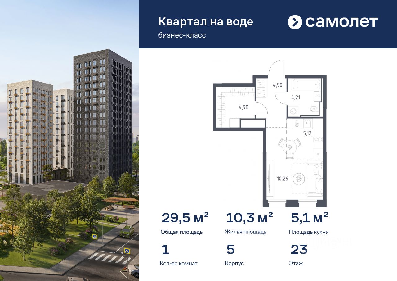 Строим кварталы для жизни с заботой о будущем. Предлагается 1-комнатная квартира бизнес-класса 29,47 кв.м в корпусе 5 на 23 этаже, в ЖК "Квартал на воде"
