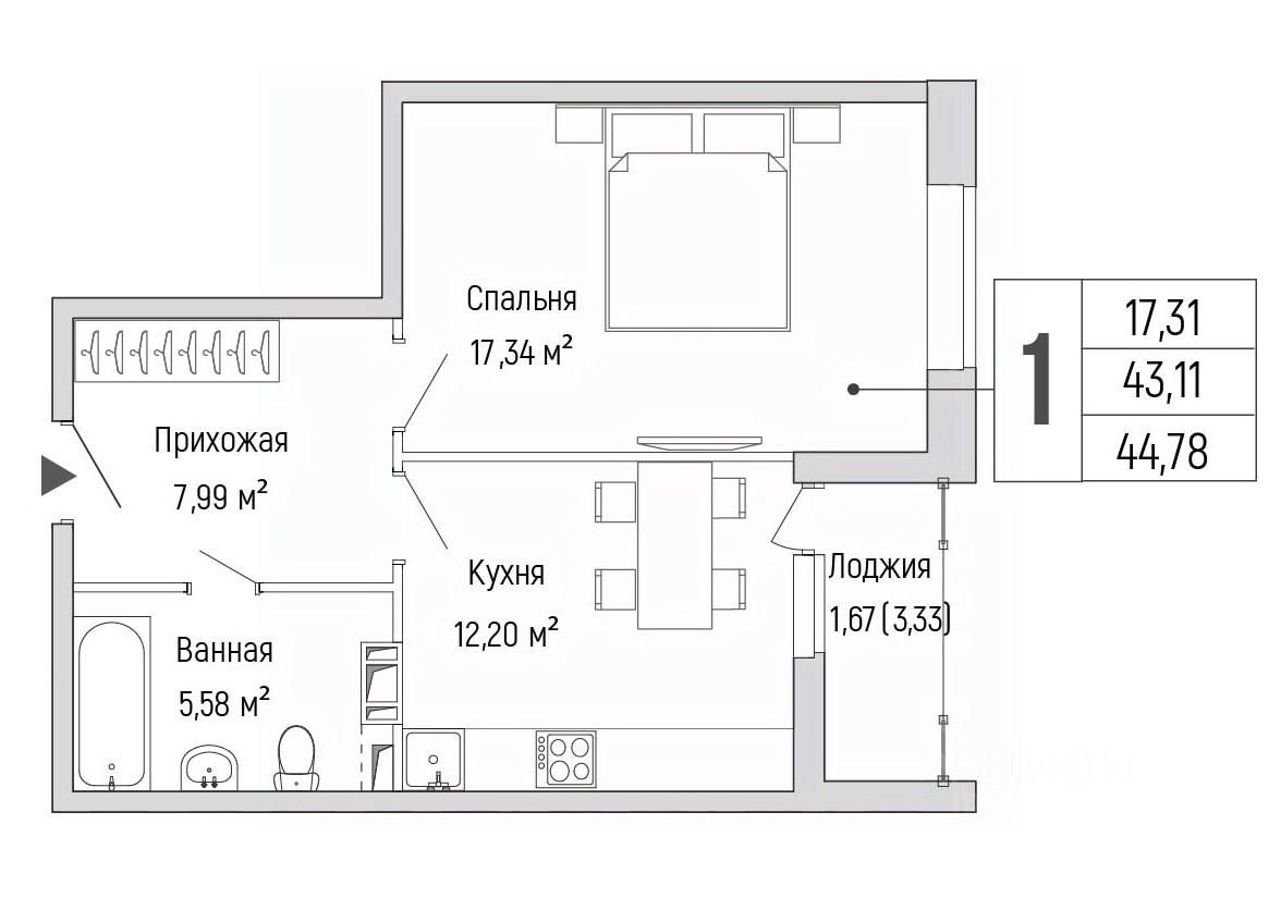 Продается 1-комнатная квартира на 4 этаже из 9, секция 2, в ЖК Riga Hills площадью 44.78 кв.м. ЖК Riga Hills (Рига Хиллс) яркий жилой комплекс бизнес-класса в экологически чистом районе Подмосковья, всего в 12 км от МКАД по Новорижскому шоссе.
