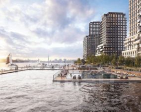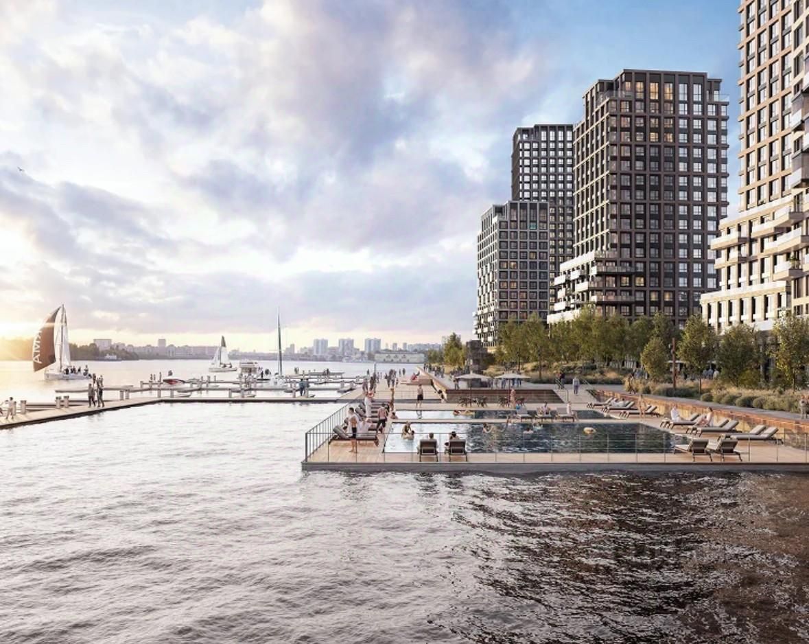 Понтонный бассейн на набережной Голландская архитектура и благоустройство