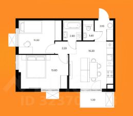 Панорамные окна выходят на лес и школу. Комната 13,6 кв.м., комната 11.2 кв.м., кухня 16,3 кв.м. , два санузла. Балкон