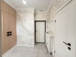 Просторная прихожая со встроенным шкафом.