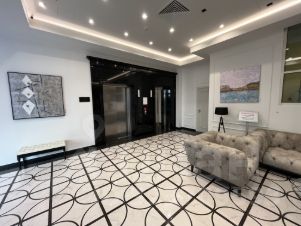 В холле дома на ресепшене круглосуточно дежурят приятные консьержи, установлены просторные немецкие лифты, которые разделены - одними пользуются только собственники и проживающие, вызов по спец. метке, а другими гости и офисные сотрудники.