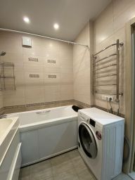 Продается уютная однокомнатная квартира 40.6 м² на 8 этаже 14-этажного дома. Планировка очень продуманная: просторная светлая комната 19 м², отдельная кухня 10 м², балкон 1.1 м с холодным остеклением, совмещенный санузел 4.3 м² и вместительная прихожая 6.2 м². Квартира продается полностью меблированной и технически оснащенной. Высококачественная отделка: натяжные потолки, на стенах обои под покраску, в комнате уложен ламинат, в кухне и прихожей практичная напольная плитка. Вся мебель встроенная и остается: два больших шкафа-купе, телевизионная стенка и рабочий стол. На кухне установлен гарнитур с долговечной каменной столешницей, интегрированной мойкой и измельчителем отходов. Вся техника включена в стоимость: телевизор Samsung, посудомоечная машина Bosch, стиральная машина Hotpoint, холодильник Samsung, микроволновка LG, духовой шкаф и варочная панель Electrolux, вытяжка Elica, а также робот-пылесос. В санузле сделан электрический теплый пол для комфорта. Разводка сантехники выполнена с использованием коллекторов и надежных труб из сшитого полиэтилена Rehau, предусмотрено 2 отдельных стояка для кухни и санузла. Установлена большая ванна 180 см с термостатированным смесителем и душем. Квартира расположена в популярном районе "Жемчужина Зеленограда" с полностью готовой инфраструктурой. В шаговой доступности школа, два детских сада, кафе, аптеки, салоны красоты и различные магазины. Развитое транспортное сообщение: до станции МЦД-3 можно дойти пешком за 15-20 минут. Ремонт делали для себя, проживали с конца 2018 года. Один взрослый собственник, в квартире никто не прописан, никаких обременений.