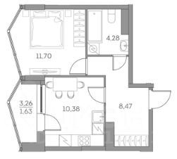 - Планировка с четким зонированием: большая спальня (11,7 м²) и изолированная кухня (10,38 м²)