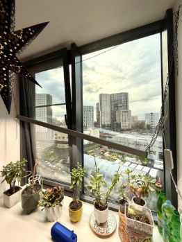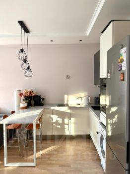 • Планировка: просторная, с панорамными окнами и потолками 2,9 м, из однокомнатной квартиры сделали студию, чтобы было больше света и ощущения пространства, но всегда можно изолировать 1 комнату. В квартире проживал один человек, квартира делалась под хозяйку и никогда не сдавалась.