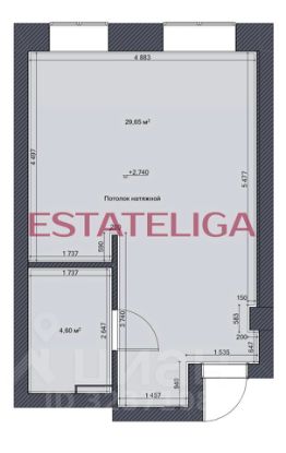 Общая площадь апартамента 37м², жилая 20м², кухня 9м². Высота потолков 3,2м.