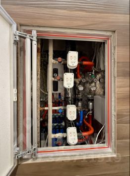- заменены, переварены и спрятаны все трубы; есть защита-автомат от протечек, проточный нагреватель (чтобы была горячая вода, когда ее отключают); вся сантехника встроенная Grohe; все радиаторы немецкие регулируемые