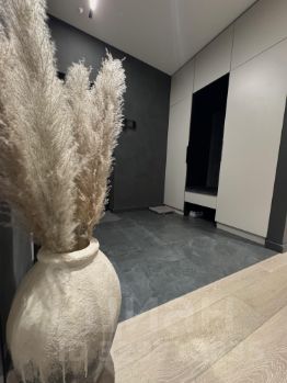 Полы керамогранит с подогревом в каждой комнате , дуб теплые и стильные покрытия во всей квартире.