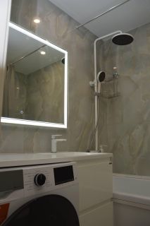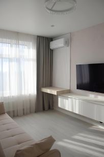 Квартира полностью готова к проживанию. Современный ремонт выполнен с использованием качественных материалов. Просторная кухня предоставляет достаточно места для организации обеденной зоны. Санузел совмещенный, оборудован современной сантехникой. Дополнительное удобство обеспечивает наличие лоджии, где можно организовать уютное место для отдыха.