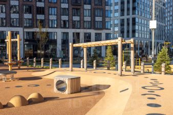 Раменки. Огороженная территория занимает 8 гектаров и доступна только для жителей. На благоустроенной 2-километровой набережной оборудованы маршруты для прогулок, бега и езды на велосипеде.