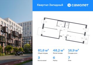 Строим кварталы для жизни с заботой о будущем. Предлагается 3-комнатная квартира комфорт-класса 81,63 кв.м в корпусе 6 на 7 этаже, в ЖК "Квартал Западный"