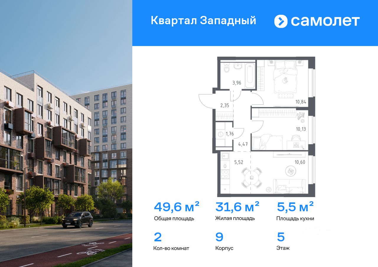 Строим кварталы для жизни с заботой о будущем. Предлагается 2-комнатная квартира комфорт-класса 49,63 кв.м в корпусе 9 на 5 этаже, в ЖК "Квартал Западный"
