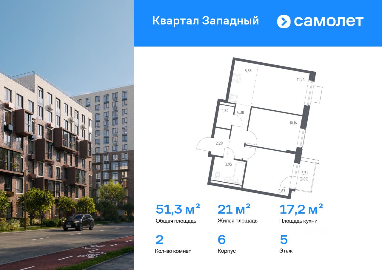 Строим кварталы для жизни с заботой о будущем. Предлагается 2-комнатная квартира комфорт-класса 51,31 кв.м в корпусе 6 на 5 этаже, в ЖК "Квартал Западный"