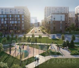 Жилой комплекс в окружении лесопарков и рядом с рекой. До станции МЦД-4 "Санино" можно дойти пешком за 7 минут, а на территории проекта появится транспортно-пересадочный узел с торговым центром. Для жителей построят школу, 2 детсада, в одном из которых будут развивающие кабинеты-трансформеры.