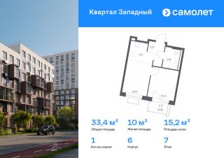 Строим кварталы для жизни с заботой о будущем. Предлагается 1-комнатная квартира комфорт-класса 33,36 кв.м в корпусе 6 на 7 этаже, в ЖК "Квартал Западный"