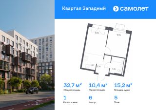 Строим кварталы для жизни с заботой о будущем. Предлагается 1-комнатная квартира комфорт-класса 32,66 кв.м в корпусе 6 на 5 этаже, в ЖК "Квартал Западный"