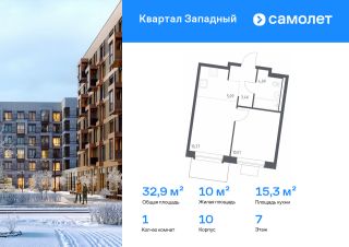 Строим кварталы для жизни с заботой о будущем. Предлагается 1-комнатная квартира комфорт-класса 32,92 кв.м в корпусе 10 на 7 этаже, в ЖК "Квартал Западный"