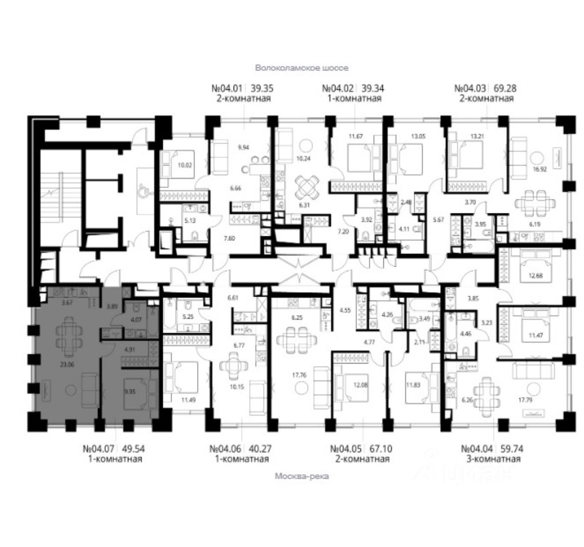 Продаётся по 1-комнатная квартира общей площадью 49.54 кв.м, с предчистовой отделкой в