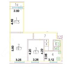 Общая площадь квартиры составляет: 62.5 м2 / жилая площадь: 44.9м2;