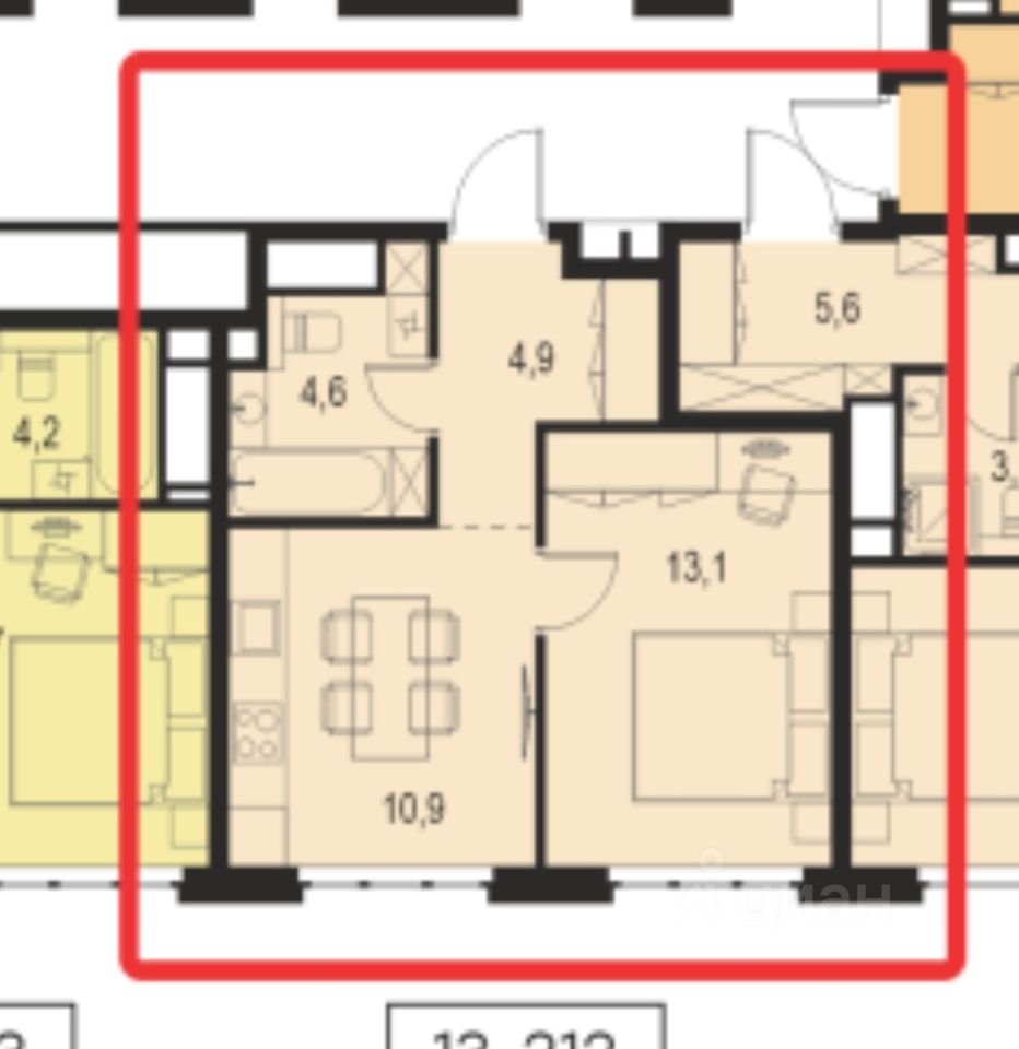 Однокомнатная квартира 33.5 кв.м. с удобной планировкой, без отделки, свободная планировка что позволит Вам сделать идеальный ремонт для себя, просторный санузел .