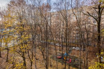 Квартира общей площадью 43,5 м2 (+ застеклённый балкон 2,5 м2) расположена на 5 этаже 9-этажного кирпичного дома. Территория дома огорожена металлическим забором. Возле дома есть детская и спортивные площадки, наземная парковка. Квартира очень светлая, все окна выходят на Запад с видом на тихий и спокойный сквер.