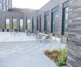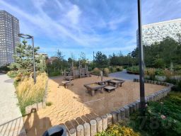 На территории жилого комплекса собственный двор-сад с системой ландшафтного дизайна и освещения, лавочками и беседками. Внутренний двор разделен на несколько детских игровых, спортивных и развевающих зон, для взрослых предусмотрены зоны для Workout и беговые дорожки. Также на территории расположен приватный детский сад, а в одном из корпусов предусмотрена игровая комната. На первых этажах комплекса спроектированы коммерческие помещения. На территории комплекса расположен 21-этажный бизнес-центр класса "А" с мультифункциональной системой для бизнеса, панорамным остеклением и подземным паркингом.