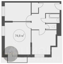 Продается двухкомнатная квартира, расположенная на 8 этаже, квартира 54. Общая площадь составляет 74.8 кв. м.