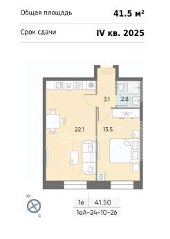 Об объекте: Предлагаем к продаже современную квартиру площадью 41,5 кв. м на