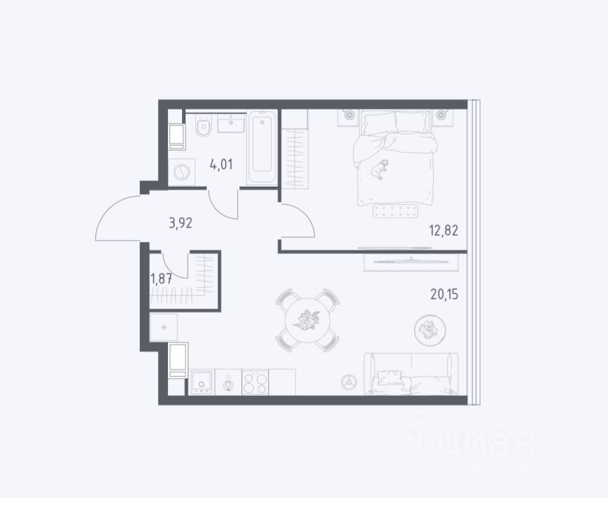 Апартаменты продаются без отделки, что позволит вам сделать свою планировку под любые цели, будь то просторная студия или комфортная Евро-2. Также можно разделить на две студии или оставить как было запланировано - решать вам!