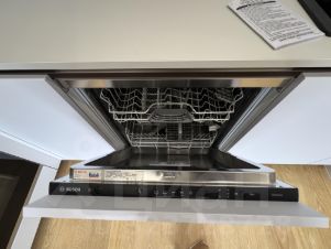 Холодильник, духовой шкаф, вытяжка, электрическая плита панель, посудомойка широкая - все фирмы Bosch.